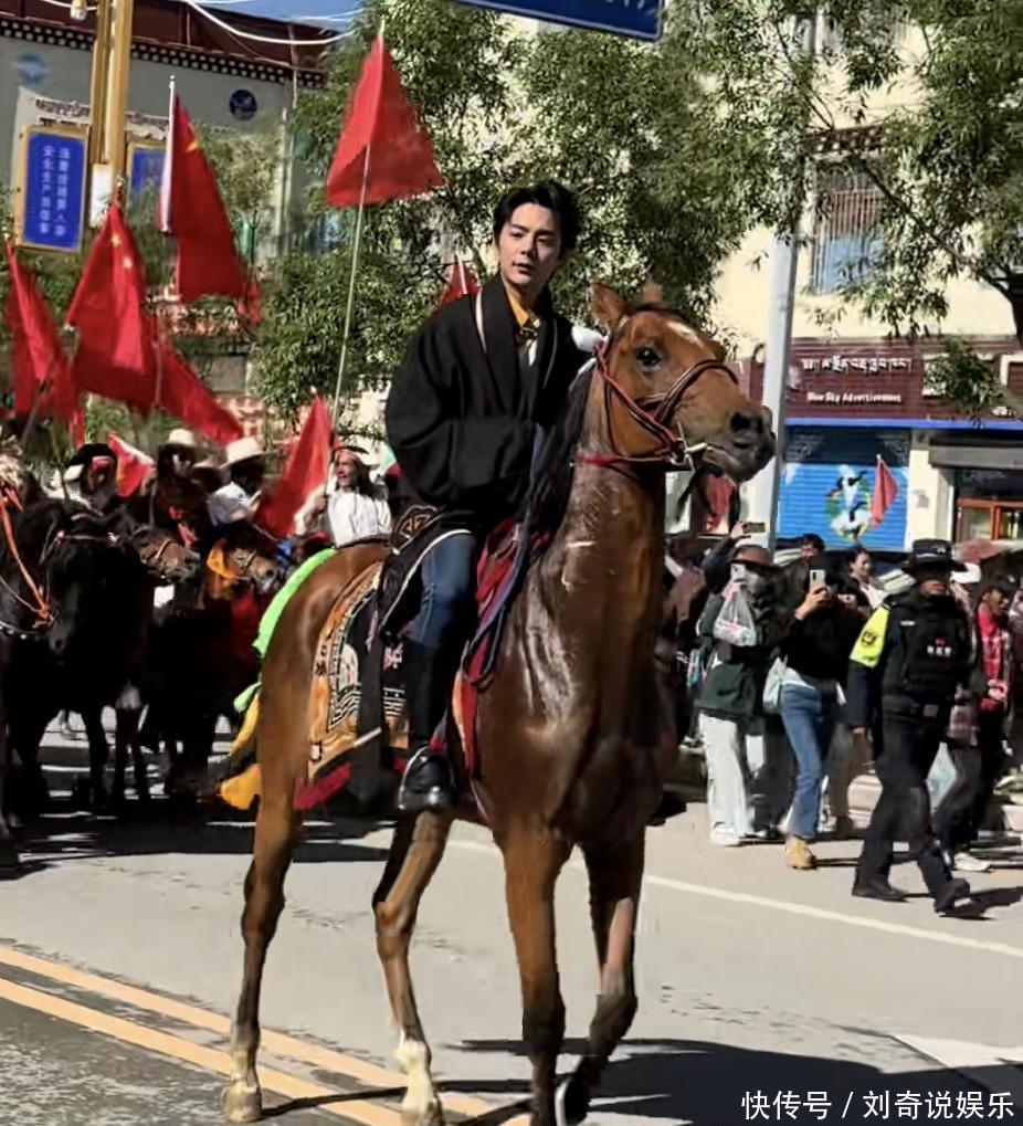 今年七月,他回到家乡参加活动,骑着高头大马在前面飞奔,身后是一排挥舞旗帜、骑着骏马紧跟其后的人们,四周都是喝彩声和欢呼声。就像个王子一样,尊贵又带点清秀,少年气息十足,整个人都散发着一股青春的朝气。有人调侃说:一回到高原就变成了高原草子,下来山后顿时就像个新兵蛋子似的。